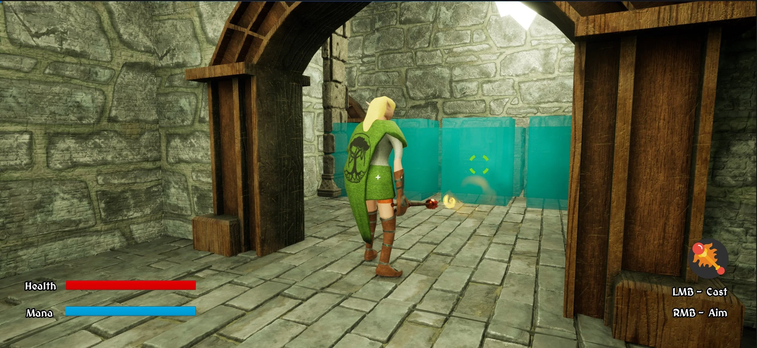 Gating mechanisms were implemented throughout the level to create a structured progression for the player. In the Chateau, locked gates require players to solve puzzles, often involving collecting items like the Fire Rod. This system ensures that players continually engage with the environment and mechanics, making them solve puzzles to advance, thus maintaining a cycle of exploration and progression.